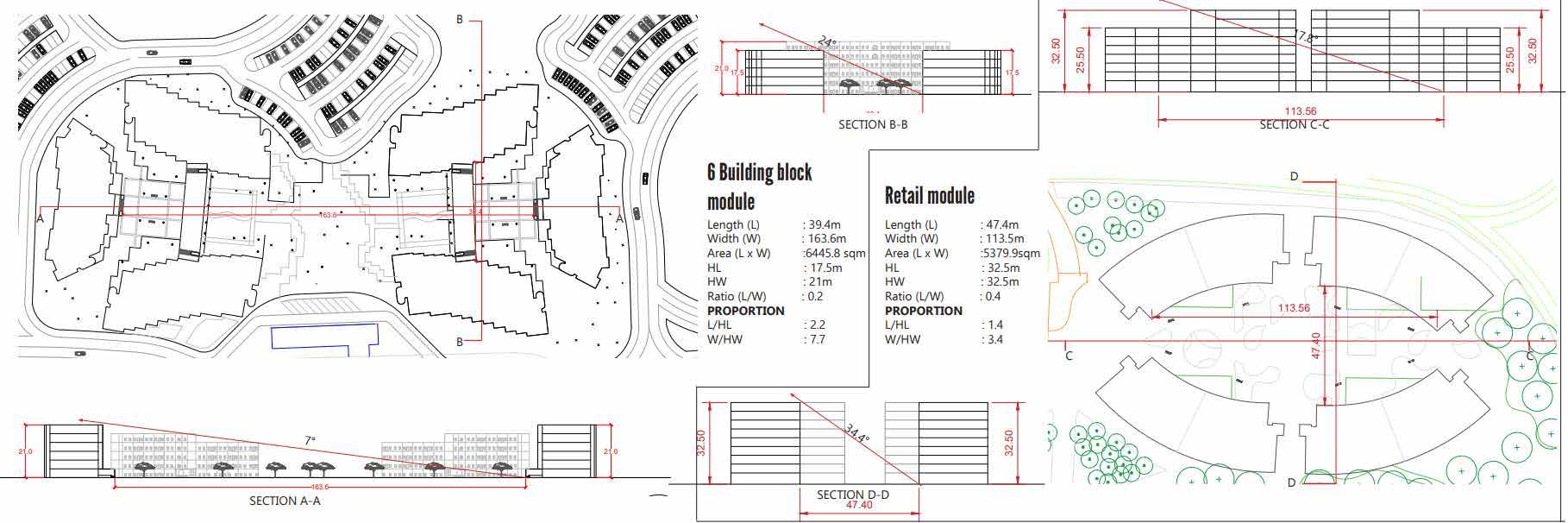 Development of service block plan and sections, site planning and road layout