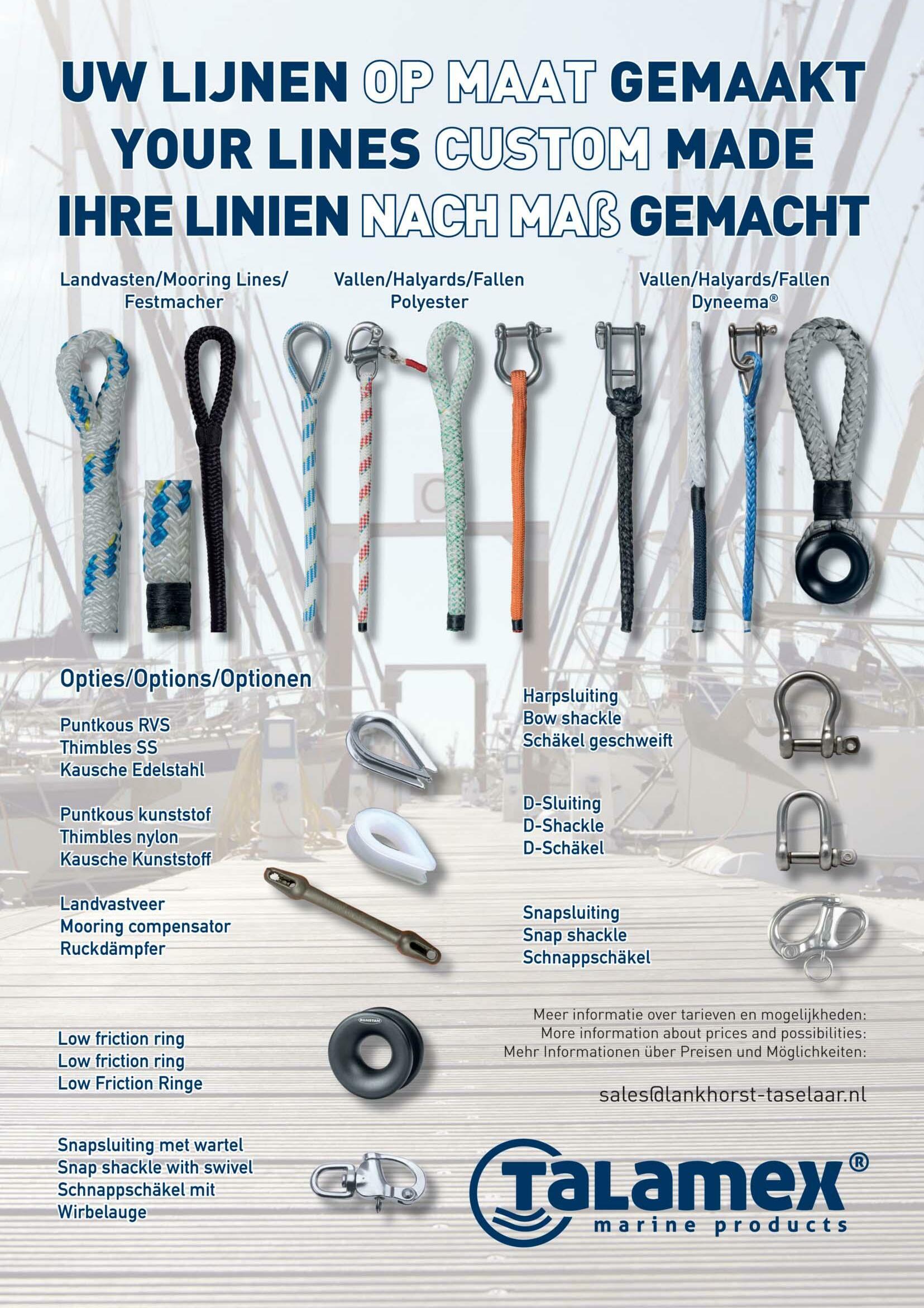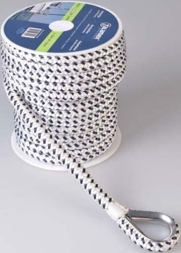 • Extremely high breaking strength • Easy handling, nonkinking • For halyards and sheets • Pretretched • Stretch < 1% • Very suitable for halyard stopper Core: Vectran® with additional cover plait Cover: Polyester Construction: 8mm - 24-plaited ≥ 10mm - 32-plaited