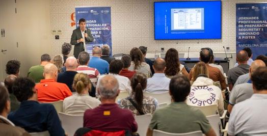 i la FCEH per a la innovació en esports de neu i la seguretat Durant dos dies es van dur a terme a l’Espai Provença de Ferrocarrils de la Generalitat de Catalunya (FGC), a Barcelona, unes jornades tècniques de formació amb l’objectiu de millorar la seguretat activa i passiva a les pistes d’entrenament. Aquestes jornades presencials van ser la primera fase d’un pla de formació que va comptar amb més de 60 inscrits i que tindrà dues accions més: una formació en línia i, per concloure, una pràctica addicional a la neu en una de les estacions d’esquí de FGC. Noms com Maria José Rienda, directora d’activitats de muntanya a Sierra Nevada; David Campà, responsable de seguretat d’FGC Turisme; Pol Sánchez, cap de pistes de La Molina; o Martín Begino, responsable de Pistes Cerro Castor (ARG), van oferir la seva visió sobre la gestió i coordinació de pistes d’entrenament i competició. Finalment, pel que fa a la seguretat en aquest àmbit, Jordi Pujol i Juli Selma, homologadors de la FIS, van explicar les claus per oferir traçats en condicions òptimes per als esportistes en totes les especialitats. El 9 d’octubre es van tractar aspectes vinculats al màrqueting, salut, ciència i tecnologia. Els doctors Diego García-Germán i Daniel Brotons, especialitzats en traumatologia esportiva i medicina de l’educació física, van mostrar la importància de saber actuar en cas d’accident..
