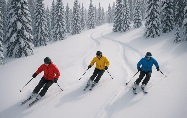 I llavors, un matí qualsevol, després d’acampar a prop d’un bosc glaçat, va passar. Vam pujar una vessant desconeguda. La boira ens envoltava, densa i grisa. No parlàvem. Només caminàvem. Fins que, en arribar al cim, el sol va trencar els núvols com si hagués estat esperant. Davant nostre, el mateix paisatge de la foto. Avets coberts de gebre. Una pendent perfecta. Intacta. Esperant les nostres petjades. Vam quedar uns segons en silenci. —És aquí —va dir en Marc amb la veu trencada. Aquella baixada no va ser la més tècnica ni la més llarga de les nostres vides. Però sí la més pura. Cada gir era una despedida i una salutació. Alhora. Vam deixar les nostres tres línies sobre la neu, igual que a la imatge, i ens vam estirar al final, rient com criatures, amb els ulls plens d’emoció.