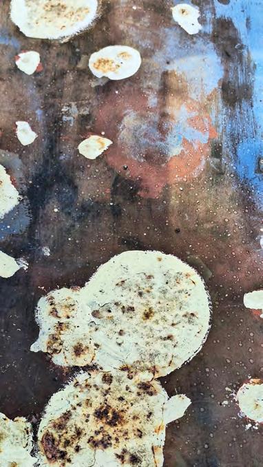 Prior to applying the new coating system, surface preparation via natural-media abrasive blasting was completed. The ‘natural’ here refers to finely-crushed coconut husks. Milder blasting media (ground walnut shells being another example) are common when restoring old or fragile substrates, or when work is taking place in an ecologically sensitive location.