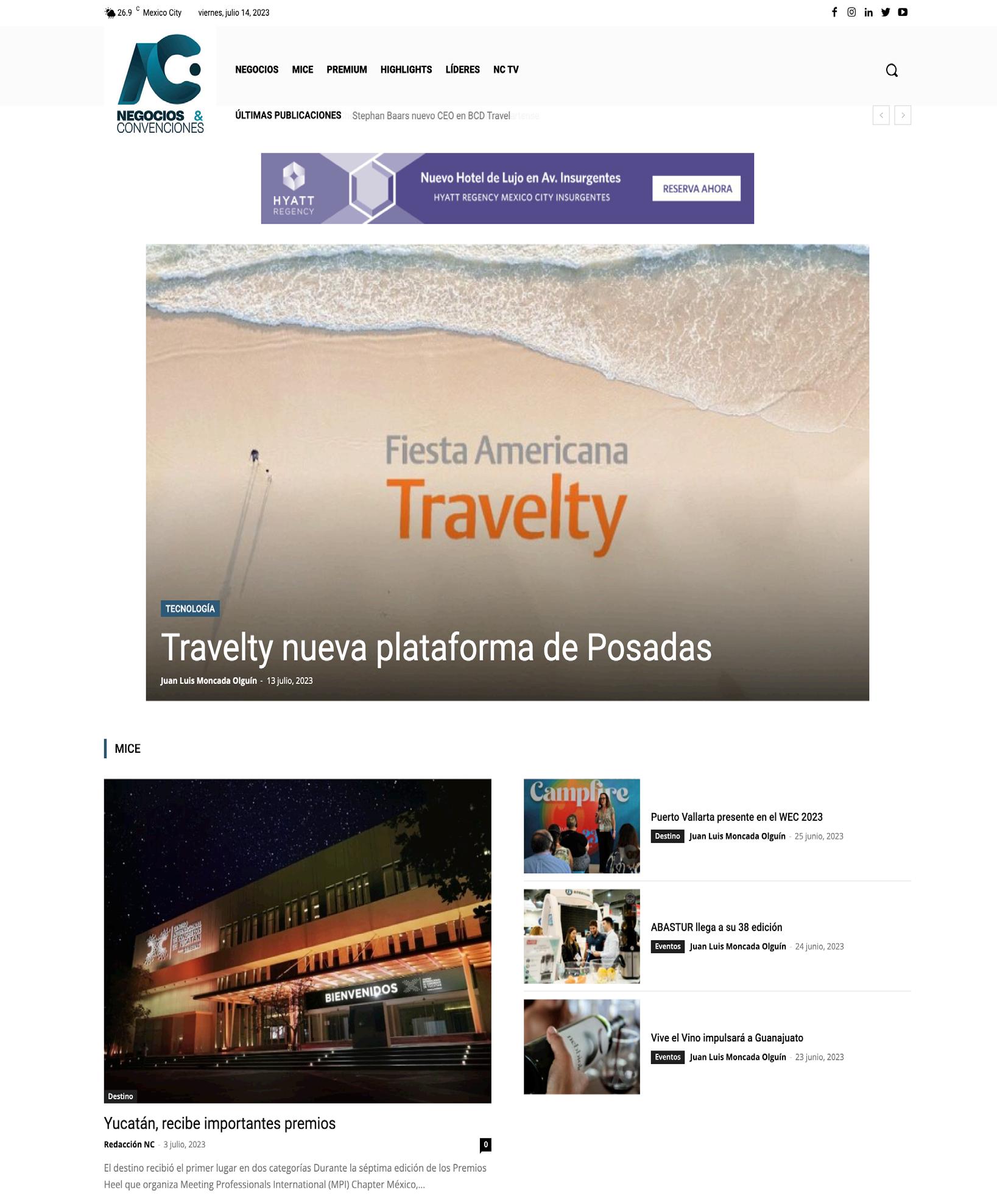 posicionado entre la preferencia de la comunidad profesional de la industria de reuniones a NegociosyConvenciones.com como un medio de referencia, influencia e información veraz, oportuna, objetiva y de análisis. Esta marca fue la primera en implementar el envío de mail blast, estrategia en redes sociales, vlog, podcast, envío a través de whatsapp y trascender como un catalizador real de leads para nuestros socios comerciales y aliados estratégicos, en impulsar la sección informativa de “zona verde” incluso antes de que se discerniera como lo que después se identificaría como Green Meetings y lo mismo ocurrió con la sección de Romance y LGBTQ+.