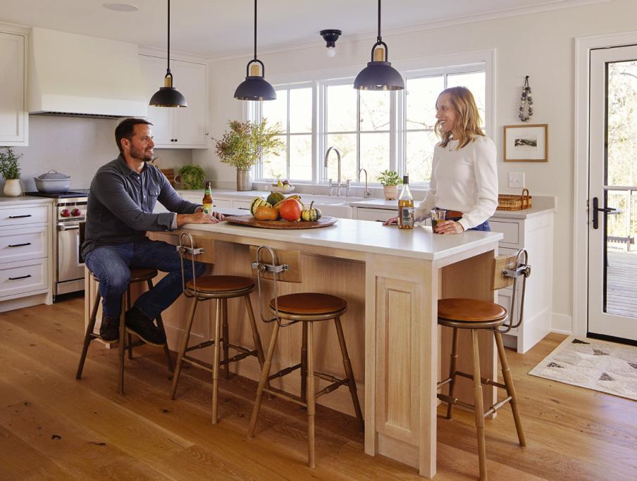 SCOOP: The ceiling above the breakfast nook opens up to a second-story window, giving the space more height and capturing natural light. The kitchen’s induction cooktop is set into a quartz countertop directly above an inset oven, which mimics a range condition but with a simpler, more elevated look.