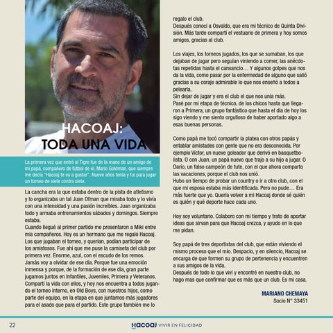 Hacoaj: Toda una vida La primera vez que entré al Tigre fue de la mano de un amigo de mi papá, compañero de fútbol de él, Mario Goldman, que siempre me decía “Hacoaj te va a gustar”. Nueve años tenía y fui para jugar un torneo de siete contra siete.