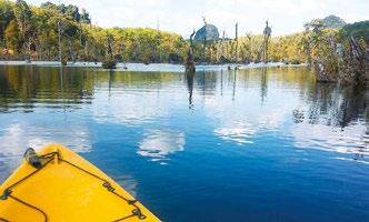 Take a boat ride to watch villagers harvesting horse mussels and breeding sea catfish, or canoe to Khao Karos to explore ancient caves and their 3,000-year-old paintings. The newly discovered Khao Napru Cave showcases a stunning forest of stalagmites and stalactites, while a thrilling zipline adventure across the Khiri Wong swamp jungle injects adrenaline into the serene atmosphere. Ban Bakan, Ao Luek District, Krabi; www.facebook.com/ bakanKayak