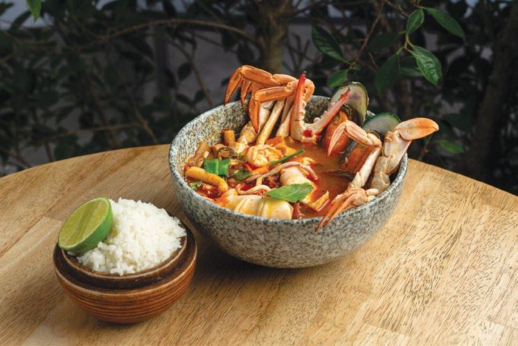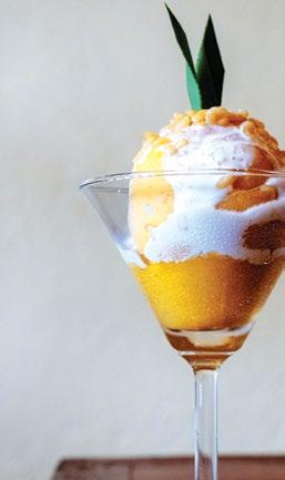 Once a firm rice pudding, Piak Poon now gleams jade-green with pandan and coconut cream – a meltin-the-mouth modern Thai delight.
