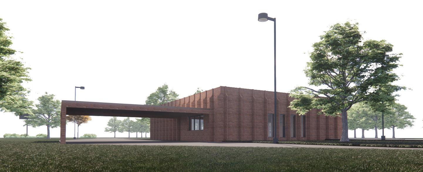 The design was first started by combining meaningful shapes found in the Harvester community. By combining an arched shape reminiscent of the historic Harvester factory tower window openings and a hexagon found on the church’s repetitive brick façade, I designed a main pattern to apply to the bus shelter’s design. The design would appear in metal perforated panels, which would be cut by students from Fort Wayne Community Schools in a fabrication lab.