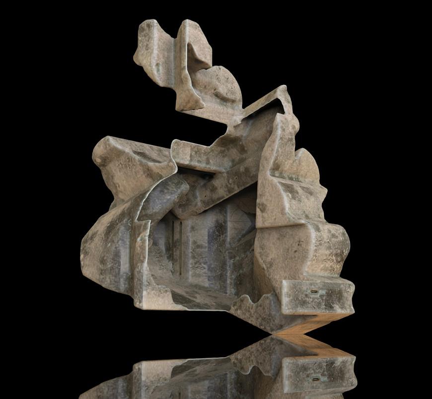 Next, experimental materials were applied digitally in ZBrush and rendered with the final geometry.