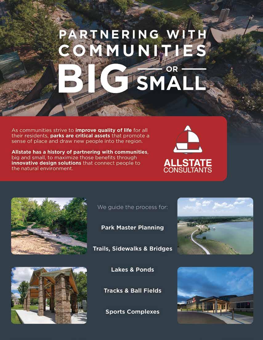 PLEASE NOTE Editorial and contents of this magazine reflect the records of the Missouri Park and Recreation Association (MPRA). MPRA has done their best to provide useful and accurate information, but please take into account that some information does change. MPRA takes no responsibility for the accuracy of the information printed, inadvertent omissions, printing errors, nor do they endorse products and services. We take no responsibility regarding representations or warranties concerning the content of advertisements of products/services for a particular use, including all information, graphics, copyrighted materials, and assertions included in the advertisements. The reader is advised to independently check all information before basing decisions on such information.