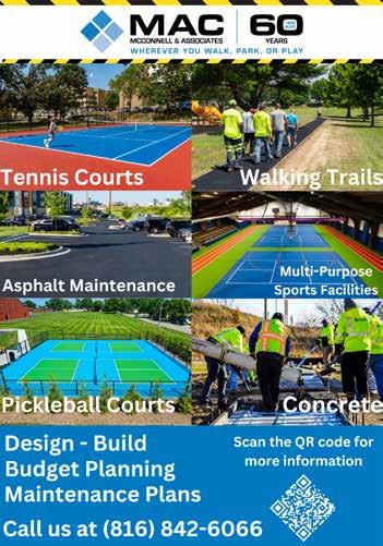 PLEASE NOTE Editorial and contents of this magazine reflect the records of the Missouri Park and Recreation Association (MPRA). MPRA has done their best to provide useful and accurate information, but please take into account that some information does change. MPRA takes no responsibility for the accuracy of the information printed, inadvertent omissions, printing errors, nor do they endorse products and services. We take no responsibility regarding representations or warranties concerning the content of advertisements of products/services for a particular use, including all information, graphics, copyrighted materials, and assertions included in the advertisements. The reader is advised to independently check all information before basing decisions on such information.