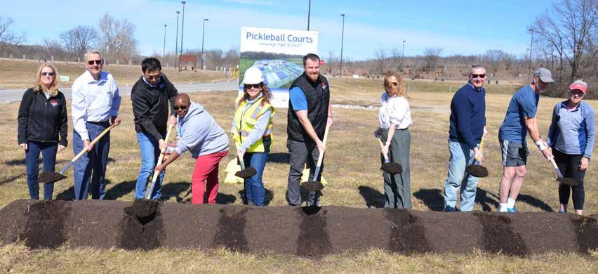 On February 28, Kansas City Parks and Recreation hosted a groundbreaking for eight new pickleball courts with additional improvements that include waterline infrastructure reconstruction, restroom installation, and sports lighting. The Hodge Park pickleball courts will be installed in the southeastern corner of the park, due south of the newly constructed playground with waterline improvements spanning the length of the project area, culminating at NE 96th St. Leath and Sons Inc. will build this $1.3 million PIAC-funded project and is set to be completed in the fall of 2025.