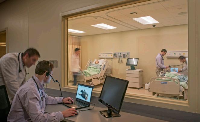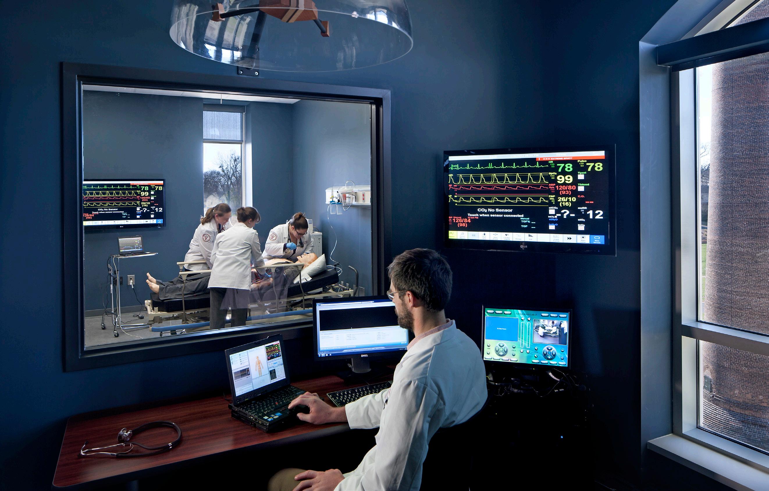 The Osteopathic Manipulative Medicine (OMM) training rooms feature one master training room with video camera pointed on the instructor to live feed directly into the other training rooms. Simulation labs included patient simulator “Smart Dummies” for hospital room simulations.