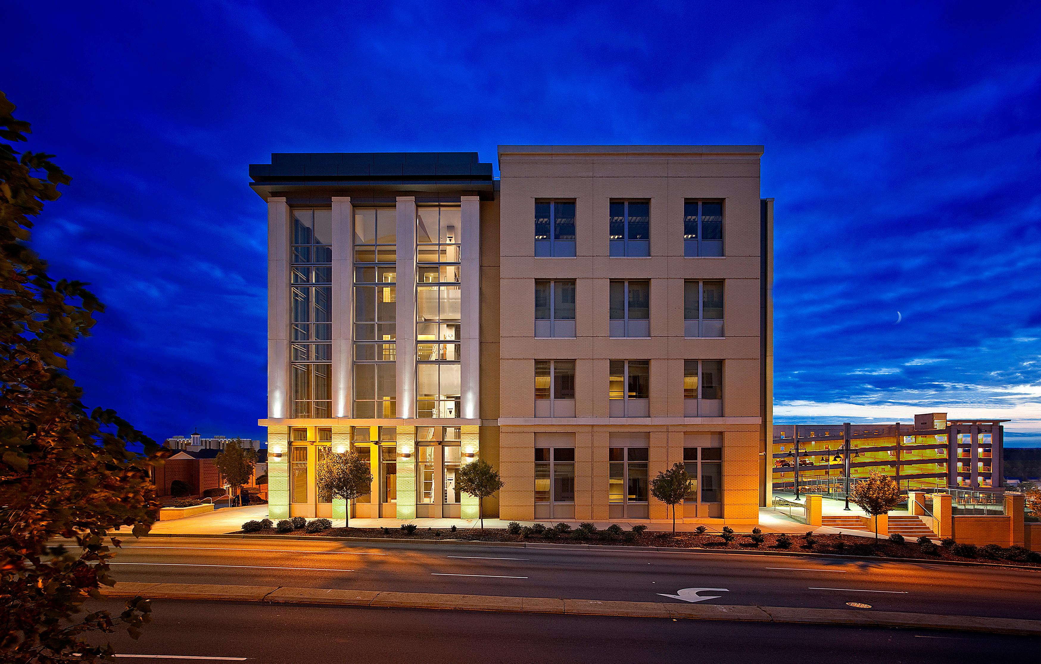 As an important adaptive reuse project for Mercer University, the former Georgia Music Hall of Fame building in downtown Macon was renovated into a new medical office building to support the University’s School of Medicine. After a careful assessment of the existing three-story structure which sits on 3.2 acres in downtown Macon, our design team created a phasing plan to bring the building up to current codes and prepare it for medical office use. Programmatic elements include the interior upfit to comprise over 50 exam rooms, treatment rooms and specialized exam areas, a collaborative radiology / imaging and dialysis center, and administrative office space. A new exterior canopy was designed for the building entrance, and the three-story atrium was partially infilled on the second and third floors to extend necessary square footage.