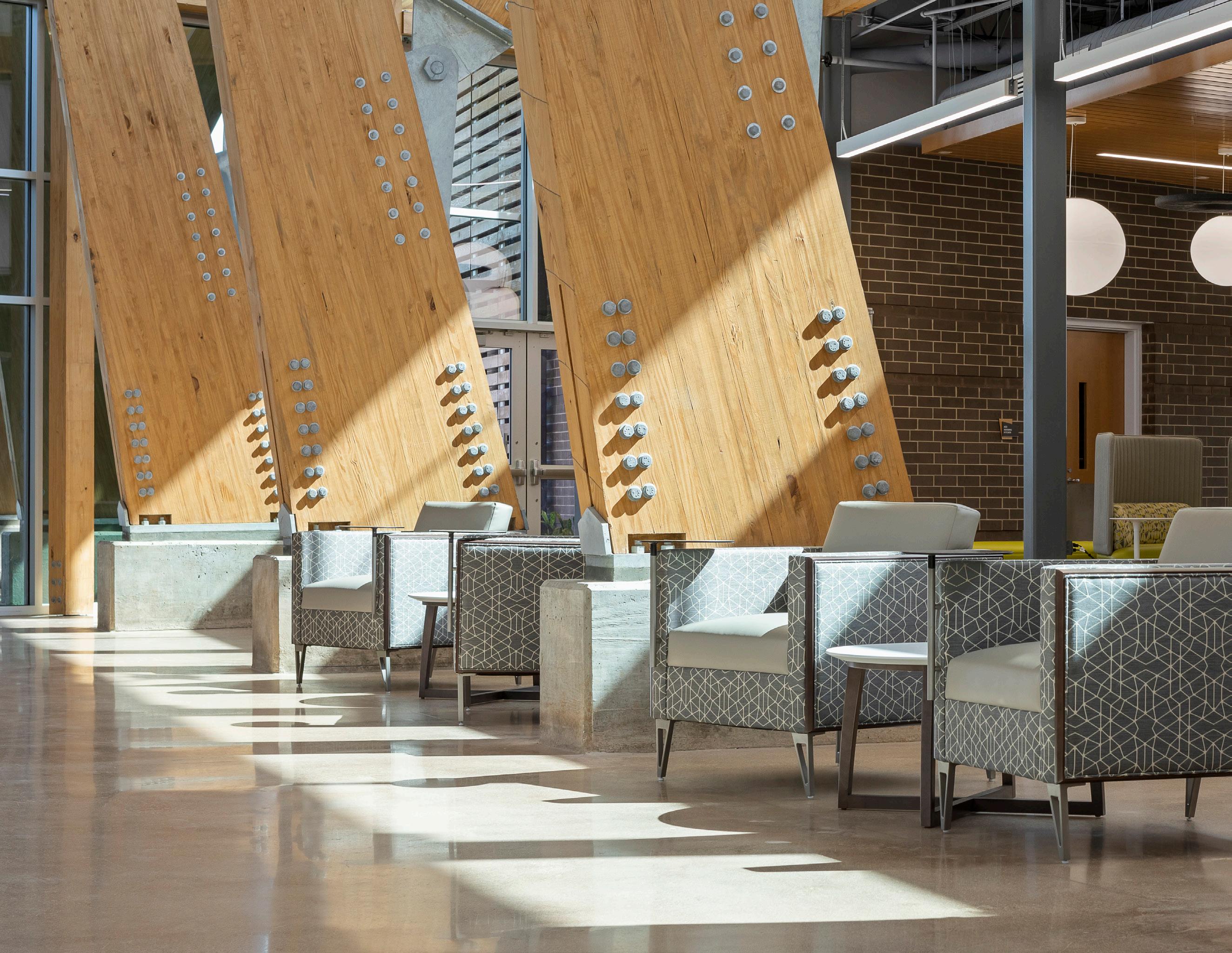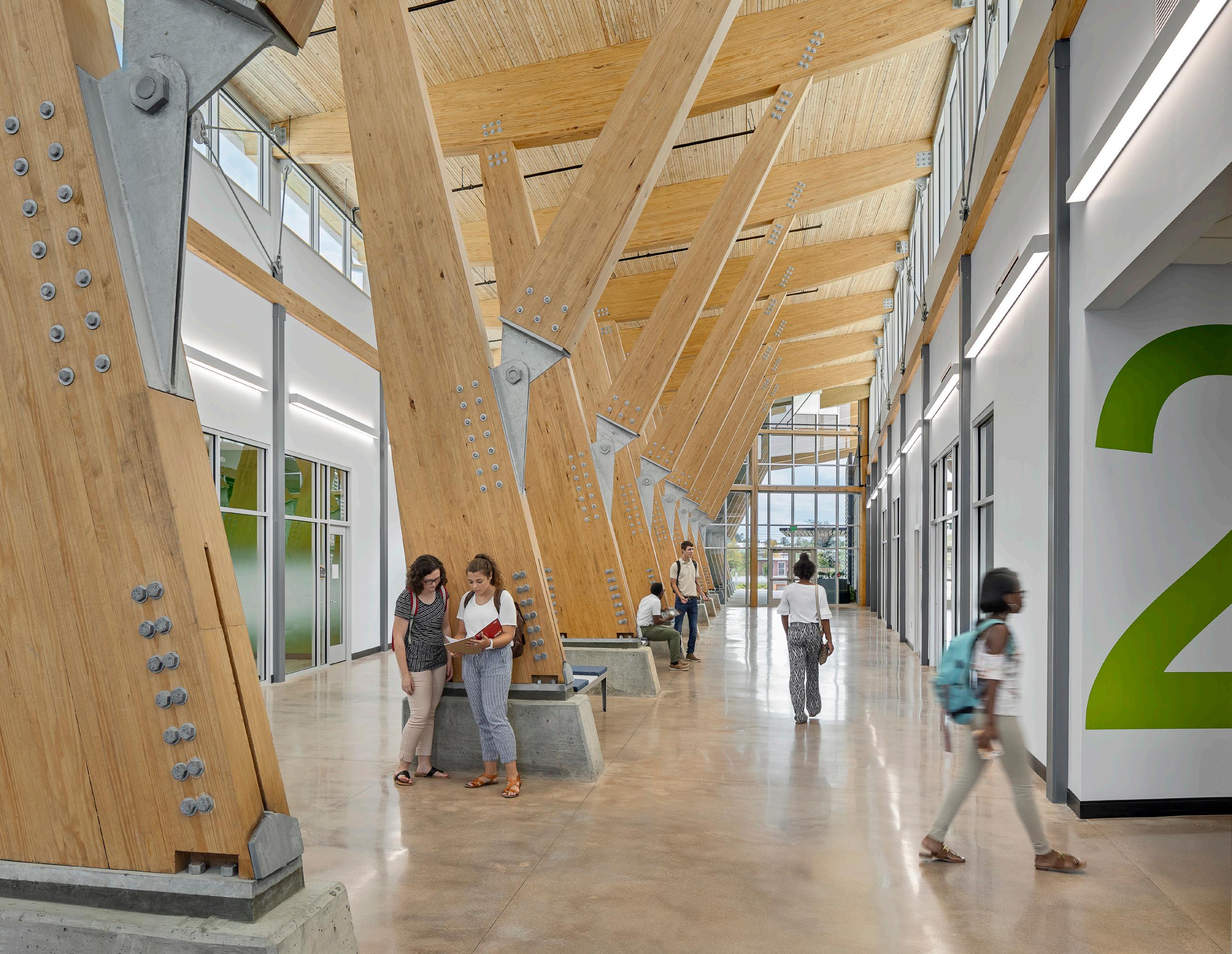 Florence-Darlington Technical College, The Continuum The dramatic choice of a heavy timber structure has transformed a previous strip mall into a favorite college icon.