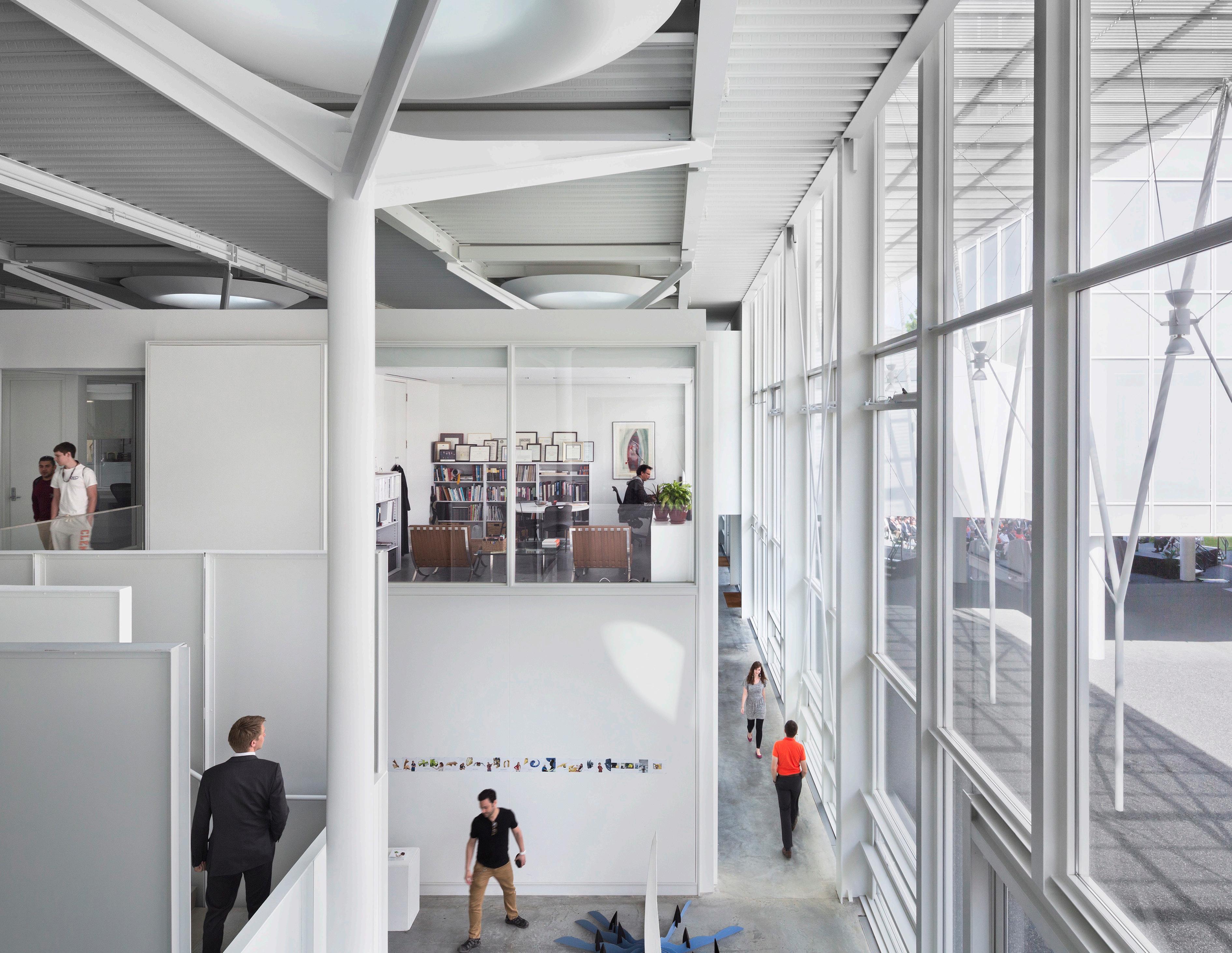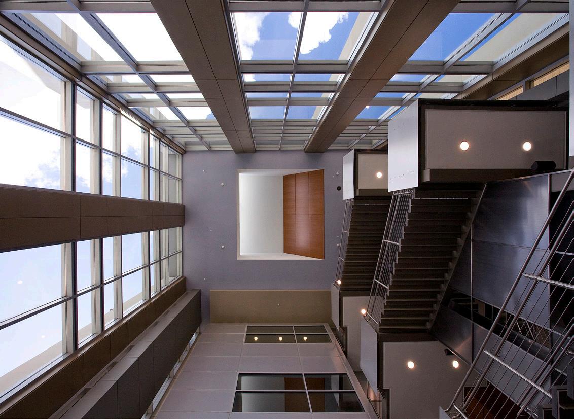 This renovation of a virtually windowless former Law School brings natural light deep inside new lab space in anticipation of a LEED Gold rating. Also pictured on next page, in association with Stantec (formerly Page / EYP)