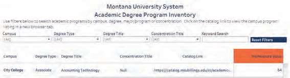 BCCoffers2+2Bachelor’sdegreeprogramsinBusinessAdministration (MontanaStateUniversity-Northern),SocialWork&Anthropology(Universityof Montana-Missoula),andElementaryEducation(theUniversityofMontana-Western).