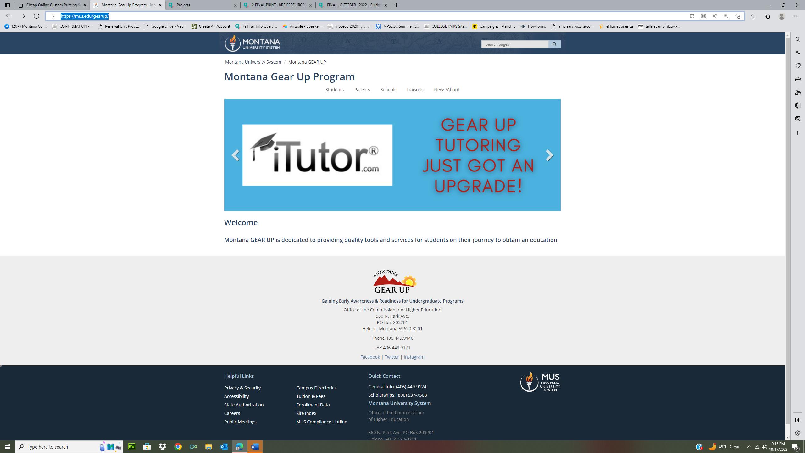 College Exploration Career Exploration Financial Aid Scholarships Resources for Parents Resources for Counselors Resources for Students & More! Vi si t us on l i n e @ w w w m us edu/gear up 560 N Park Ave PO Box 203201 Helena, Montana 59620 3201 mus edu/gearup