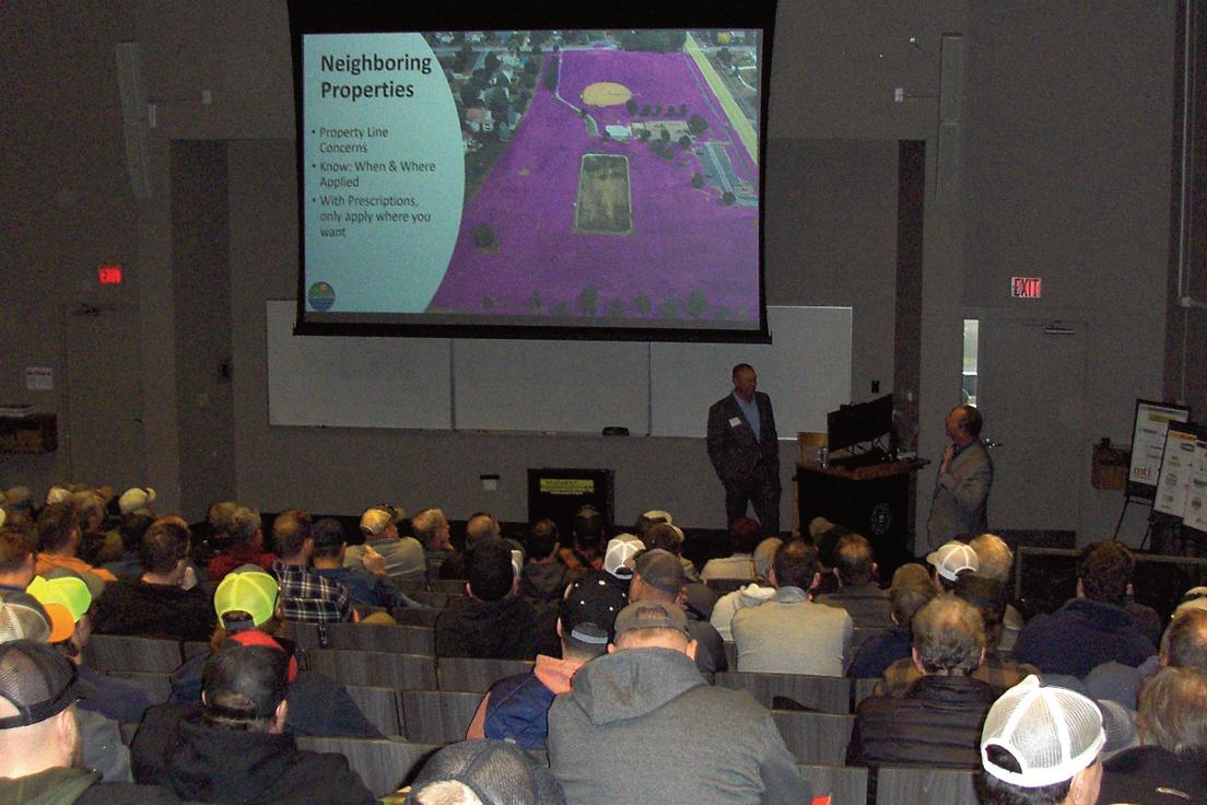 Dr. Jon Trappe provided a UMN Turfgrass Research Update. Weston Floyd, Texas A&M and Mark Kruse CSFM, City of Lakeville spoke on GPS spraying and spreading. Floyd gave a second talk on new technology in sports field management.