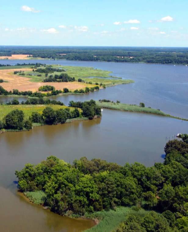 Poplar Island’s ongoing restoration is the result of an extraordinary collaboration among state and federal agencies. Material dredged from nearby shipping channels is the foundation for what has become a stunning ecosystem, populated by an ever-growing list of species. Researchers monitor the environment yearround, studying the diamondback terrapins, endangered shorebirds, and striped bass that take shelter in the pristine wetlands.