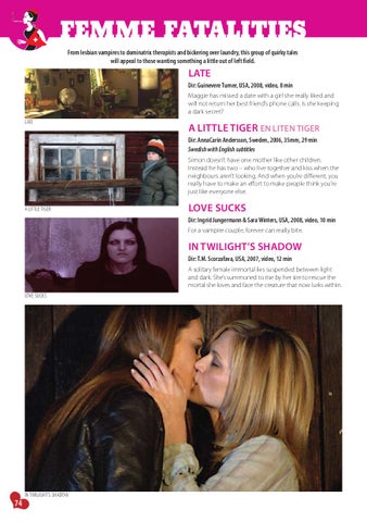 A LITTLE TIGER EN LITEN TIGER Dir: AnnaCarin Andersson, Sweden, 2006, 35mm, 29 min Swedish with English subtitles Simon doesn’t have one mother like other children. Instead he has two – who live together and kiss when the neighbours aren’t looking. And when you’re different, you really have to make an effort to make people think you’re just like everyone else.