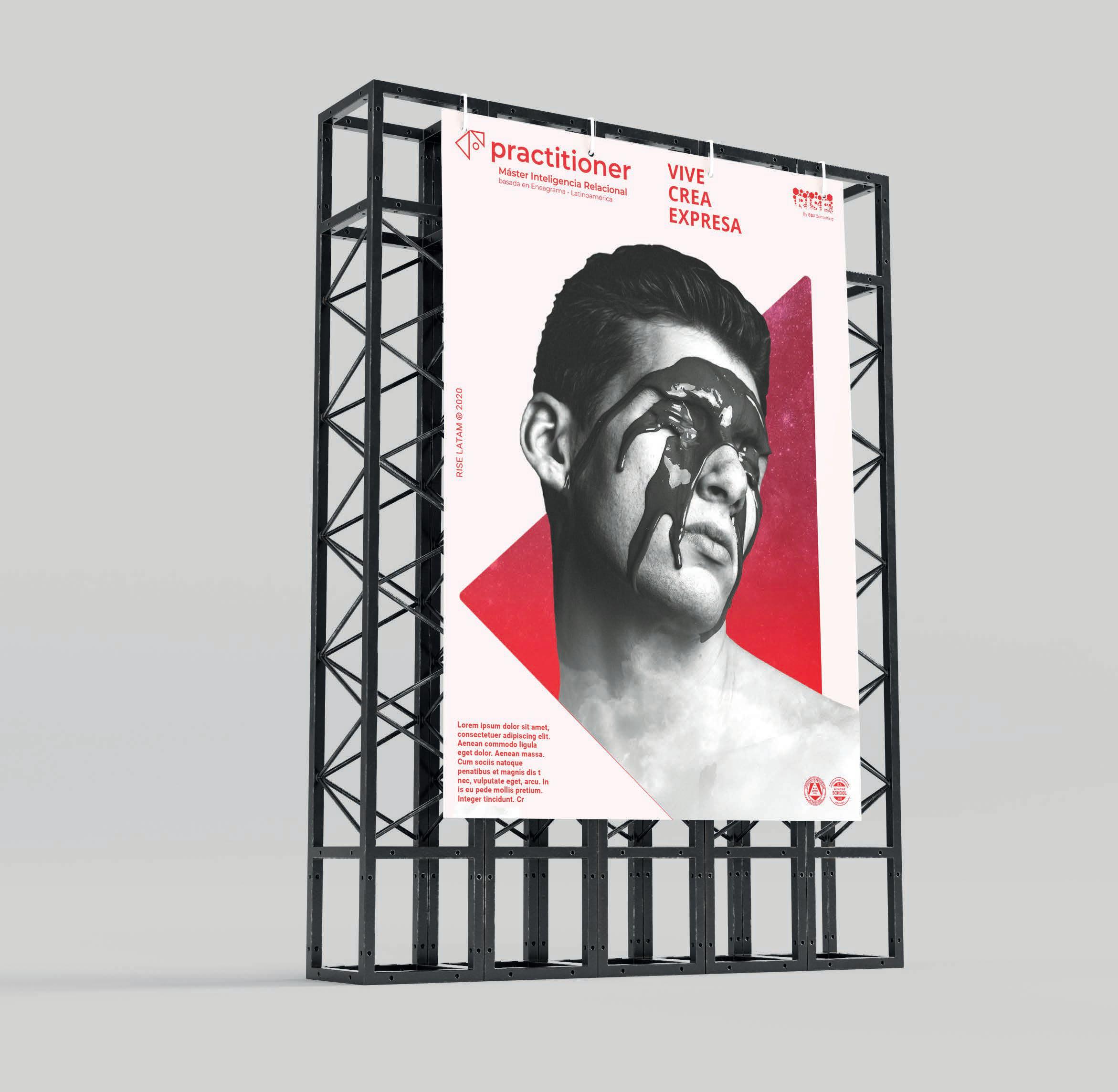 Posters internos diseñados con elementos abstractos y deconstrucción fotográfica para ilustrar competencias blandas de manera creativa.