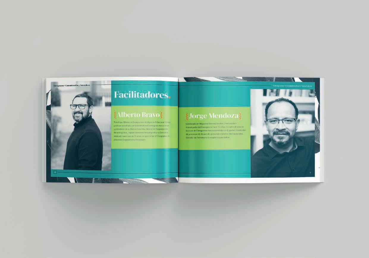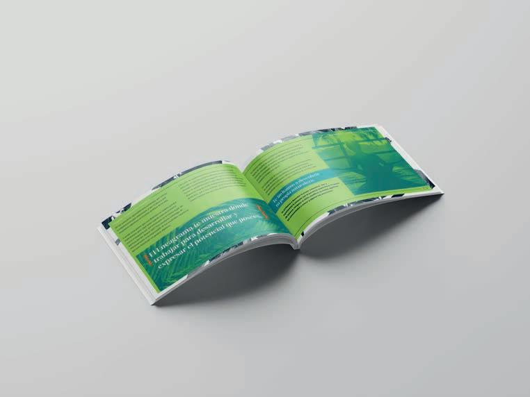 Brochure que mezcla espiritualidad, realidad y naturaleza en un concepto abstracto, alineado con los valores del taller.