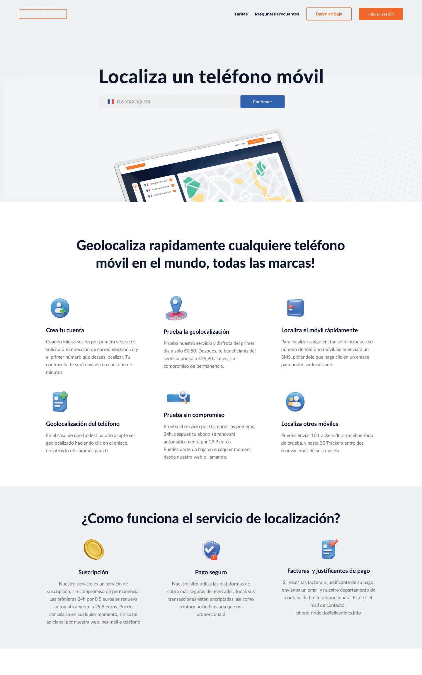 Página diseñada para transmitir seguridad y confianza, permitiendo localizar teléfonos fácilmente desde cualquier lugar. Un flujo optimizado que combina funcionalidad con estética amigable.