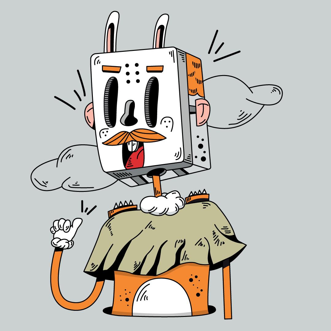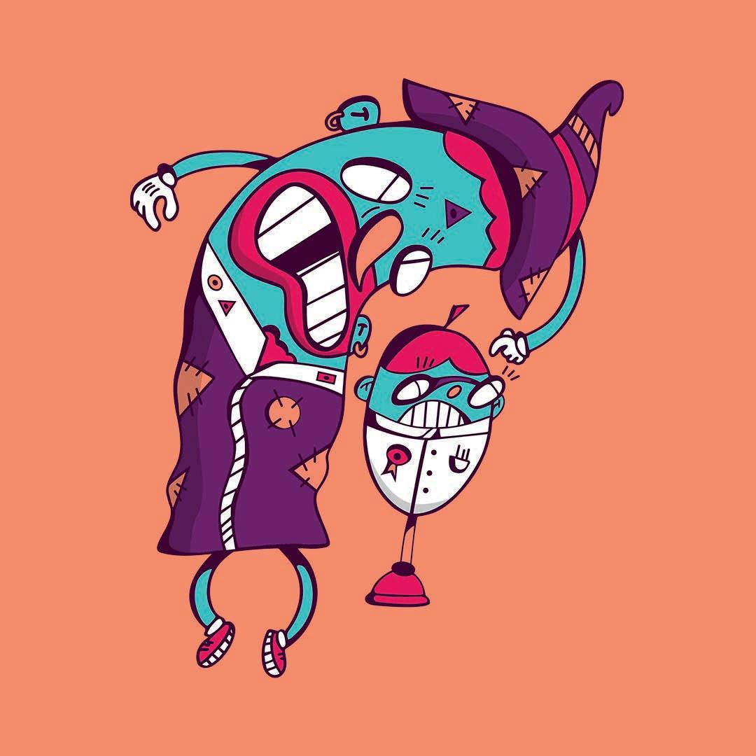 Serie de ilustraciones de personajes abstractos creadas para merchandising. Concepto único y llamativo que mezcla arte conceptual y funcionalidad comercial.