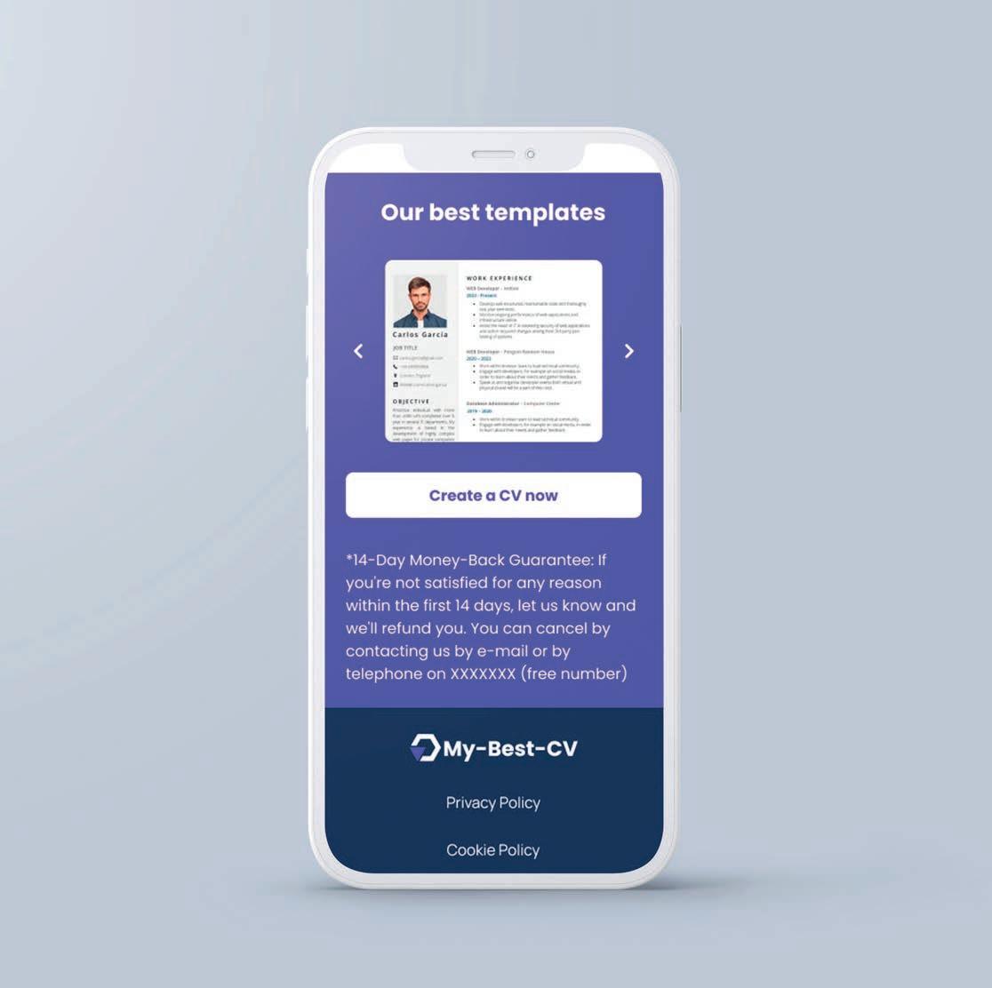 Herramienta para crear hojas de vida con plantillas editables y CTAs claros. Diseño funcional y directo que mejora la navegación y optimiza resultados.