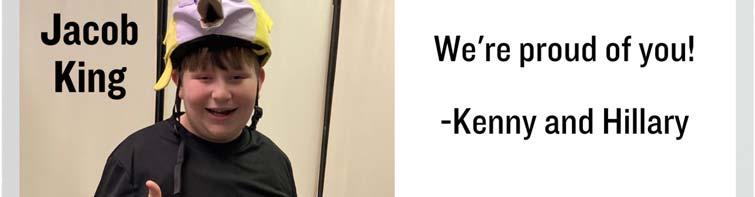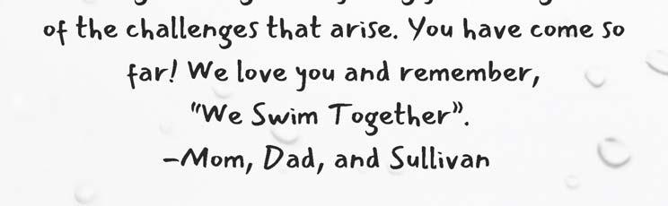Jacob King- Swim your way to success, Jacob! Love, Dad, Mom, Jackson and Gunner… Jacob, Coingratulations…Have fun! Love, Nana…Wishing you an “epic adventure”, Jacob. Love, Pappy Chuck, Aunt Kellie, Ava and Lexxi…Congratulations Jacob on exploring a new world! Love, Uncle Ken, Aunt Laurie, and Family
