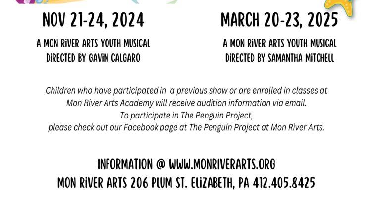 March 21-24, 2024 Grand Theatre 207 S 2nd Ave Elizabeth www.monriverarts.org Mon River Arts Youth Theatre presents