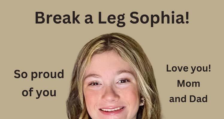 Julia Greisheimer- Congratulations on your 5th musical Julia! Break a leg! Love, Mom, Dad, and Lauren.