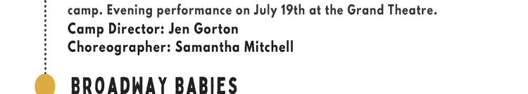 This year marks the 17th anniversary of Children’s Theatre productions at the Grand Theatre. Back in the spring of 2007, Musical Theatre students at the Grand were looking for a way to continue their theatre experience, stay together as a group, and showcase their talents on a regular basis. In June of 2007 a group of 28 kids starred in their first production of Jungle Book. Since that initial production, MRA Youth theatre has produced 38 shows including Alice in Wonderland (2007 & 2014), Cinderella (2008), Oz! (2009), Princess and the Pea (2009), Aladdin, Jr. (2010 & 2018), Guys and Dolls (2010), Charlotte's Web (2011), Little Luncheonette of Terror (2011), There’s A Monster In My Closet (2011), Anything Goes (2012), The Rockin Tale of Snow White (2012), Once On This Island, Jr. (2012), Seussical, Jr. (2012), Oklahoma (2012), The Little Mermaid, Jr. (2013), Music Man (2013), Willy Wonka, Jr. (2013), My Son Pinocchio, Jr. (2014), Bye Bye Birdie (2014), Beauty and the Beast, Jr. (2015 & 2023), Peter Pan, Jr. (2015), Pajama Game (2015), All Shook Up (2016), Bugsy Malone, Jr. (2016), High School Musical, Jr. (2016), Into the Woods, Jr. (2017), Treasure Island (2017), Lion King, Jr. (2018), Shrek, Jr. (2019), Elf, Jr. (2019), Mary Poppins, Jr. (2020), Fame, Jr. (2021), Moana, Jr. (2022), Frozen, Jr. (2022), and Mean Girls, Jr. (2023).