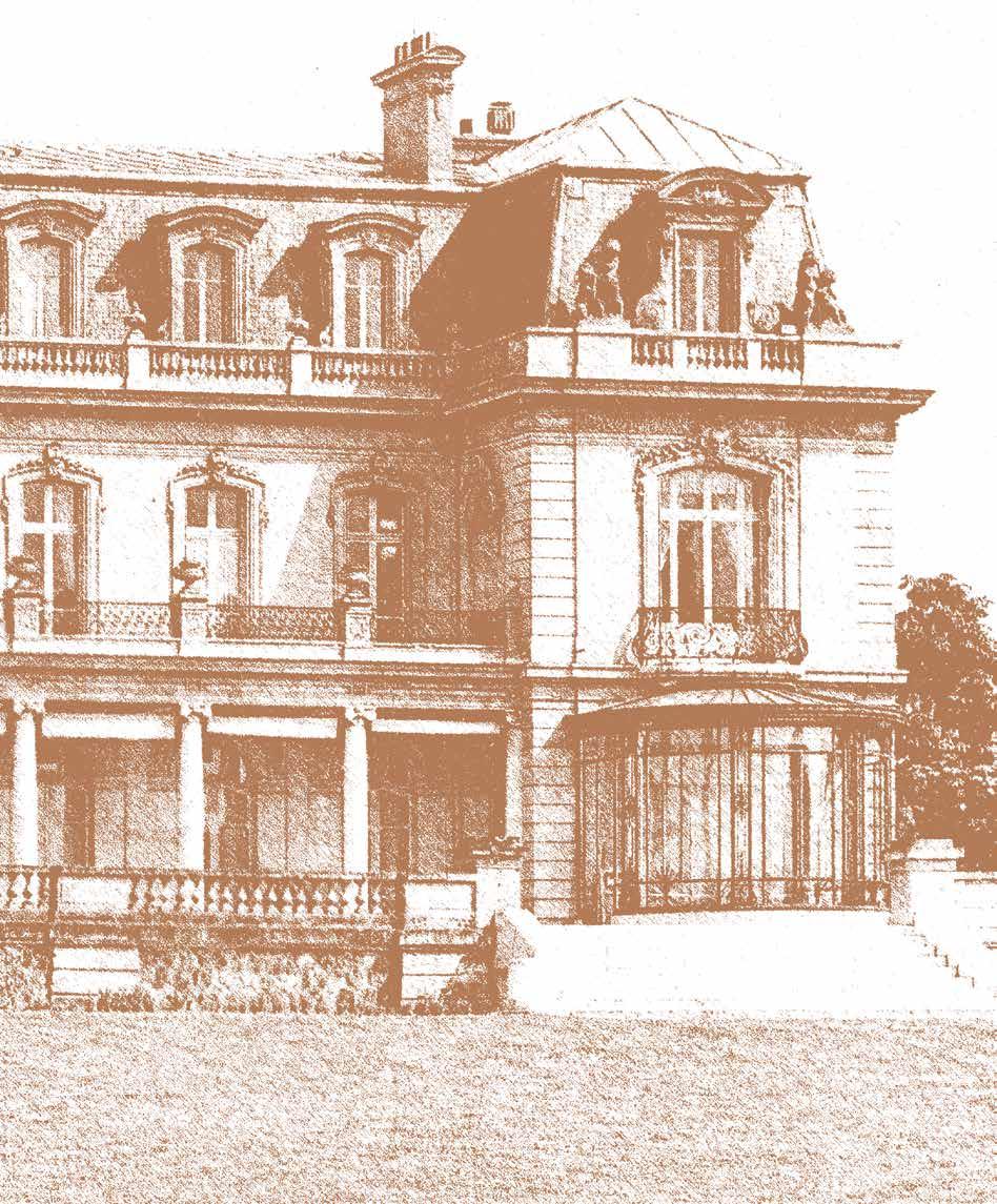 residence nestling in a 17.3-acre park proclaiming the talent of Édouard André. Taking advantage of the site’s curves and elevation, the landscaper composed subtle perspectives opening up views of the Saint-Remi Basilica and the Cathedral between the foliage. Gardens which became an invitation to experience escapism, a stage for discoveries. In 1918, the park became even more gracious when entrusted to landscape-architect Édouard Redont from the Marne.