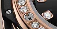 Boîtier en King Gold 18K serti de diamants. Mouvement automatique. Bracelet interchangeable par un système d'attache unique.