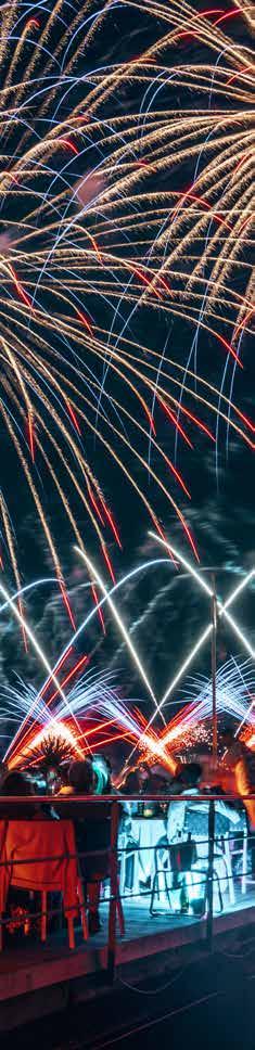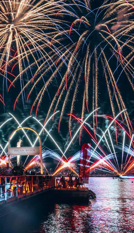 Dusk begins to shroud the Bay of Cannes. The crowd buzzes with excitement. Hundreds of thousands of faces are raised to the sky, waiting impatiently for a show expected to be grandiose. Organized by the Palais des Festivals et des Congrès, this celebration has been held each summer since 1967, uniting firework displays, light and sound. As starting-time approaches, the atmosphere on the seafront becomes electric. The first strains of music are heard, echoing through the Festival City. Suddenly, a rocket streaks across the sky, sending a shower of dazzling colour over the sea. Then comes celestial choreography in total synergy and harmony, lasting about 30 minutes. In this sparkling obscurity, thundering applause breaks out. Eyes also sparkle, the atmosphere is charged with emotion. Each performance is a moment of pure magic. This elitist ballet of pyrotechnical effects requires several months of intense preparation by firework experts from all over the world, who deploy all their creativity to stage artfully orchestrated pyromusical shows. From five barges at their disposal, anchored 400 metres from the shore, they master musical compositions and light shows with 100% precision. Rivals in imagination and technicality, they compete under their nations’ flags to win the ‘‘Vestale d’Argent’’ – a prestigious award recognising their excellence and innovation in this ancient art. At the end of the sixth and last evening, this trophy rewards the most popular display among the jury and the public. The winner can then aim for the ‘‘Vestale d’Or’’, a precious prize awarded every four years, to join previous titleholders.