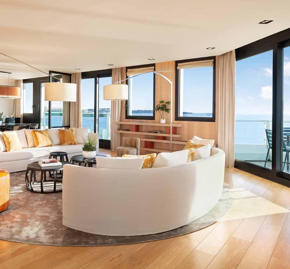 Unique in their kind, the suites are the pinnacle of luxury, each one ensuring an extraordinary stay. Recalling a yacht cabin, the Presidential Suite offers 170 sq.m of refinement embodied in its designer furniture and elegant parquet floor. The nec plus ultra: three balconies and breathtaking views. Then, for a truly exclusive experience, head for the 4th floor! Three new suites from 44 to 60 sq.m play the ace of flexibility to offer, when united, a superb space of 150 sq.m. Totally modular and personalizable, these suites meet the desires of the most demanding guests, transformed into family apartments or conference rooms, as explained by Archway Design, the architects entrusted with the project. Bespoke at its purest!