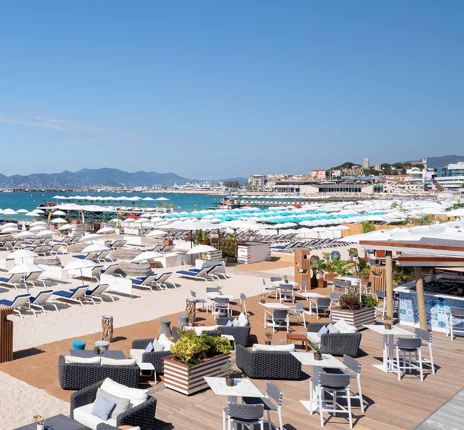 It was not until 1988 that this legendary building was transformed into an hotel by architect Michel Delattre. A nod-and-a-wink to the magic of the movies, the Théâtre Croisette with 820 seats was installed in the basement. Several owners and brands succeeded one another; from the Noga Hilton to the Palais Stéphanie, until the current JW Marriott 5-stars. With architect Alain Moatti and his team at the helm, including interior designer Marie-Pierre Guérin, it was treated to a facelift in 2021. A stylish facade, restructured lobby, new luxury boutiques, a casino, champagne bar, Italian restaurant, private beach, panoramic terrace, conference centre, not forgetting 262 rooms, spruced up and decorated on the theme of the 7th Art… JW Marriott pulled out all the stops! With its top-quality service, this ‘‘haute couture’’ showcase redefines excellence, offering guests an experience in which luxury embraces ultra-modern design while preserving an aura of 1950’s glamour.