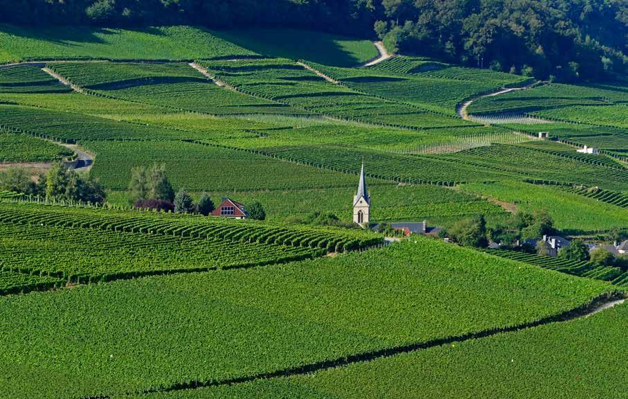 ses vins secs, les nombreux cépages présents lui confèrent en réalité une grande diversité. L’appellation d’origine protégée, « Moselle Luxembourgeoise » en compte 14. Le Rivaner, vin historique du Grand-Duché, constitue à lui seul un tiers du vignoble. De leur côté, le Riesling ou les variétés bourguignonnes que sont l’Auxerrois et le Pinot Gris représentent également une belle part de la production. Dans le verre, ces vins tantôt vifs et racés, tantôt ronds et aromatiques, donnent à chacun la possibilité d’apprécier l’expression des saveurs de la région. Les vins blancs tranquilles sont assurément un grand classique, mais ils laissent tout de même s’exprimer des rouges très intéressants et des vins mousseux de grande qualité.
