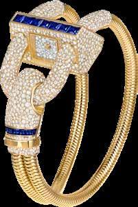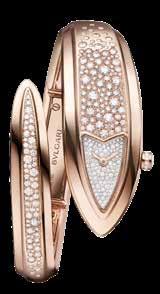 3. Bulgari Montre Serpenti Aeterna en or rose et diamants. Serpenti Aeterna watch in rose gold and diamonds. 4. Cartier Montre Panthère de Cartier, petit modèle, en or rose sertie de diamants. Panthère de Cartier Watch, small size, in rose gold and diamonds. 5. Boucheron Montre Serpent Bohème en or jaune 18 carats sertie de diamants et de billes d’or. Serpent Bohème watch in 18K yellow gold, set with diamonds and gold beads. 6. Hermès Montre-broche Maillon Libre. Maillon Libre Brooch-Watch.