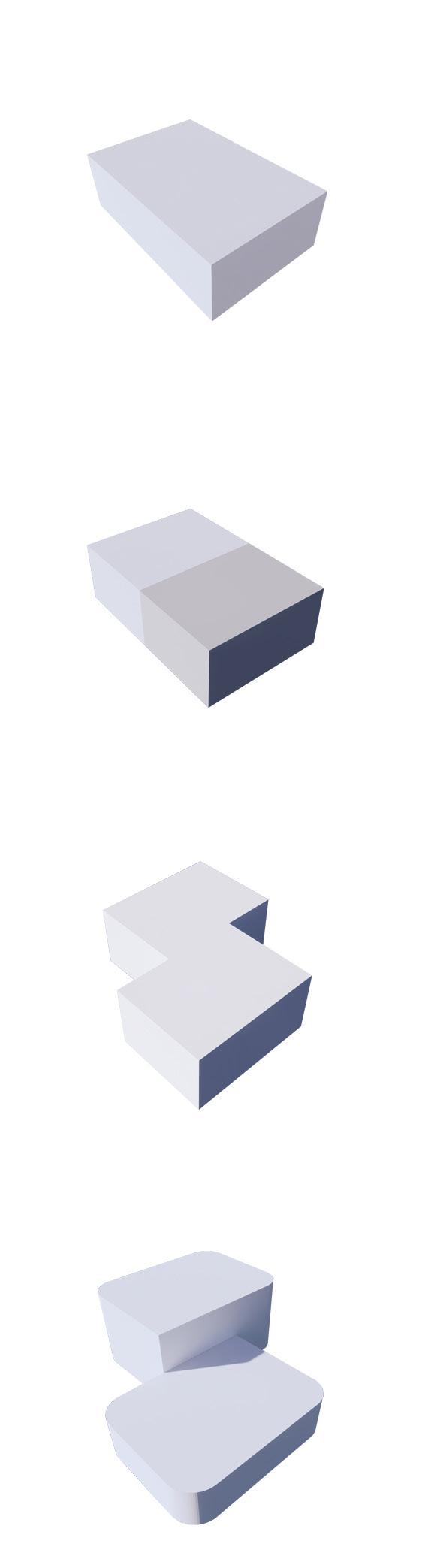 The concept was inspired by ice cubes, were edges was curved and through the blocks placed, the sufficient lightinth and ventilation is achieved.