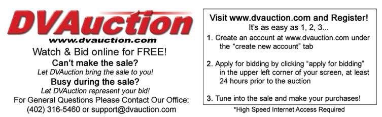 A supplemental sheet with sale order and complete up-to-date information, will be available sale day. It will also be posted on the web site and DVAuction, when available.
