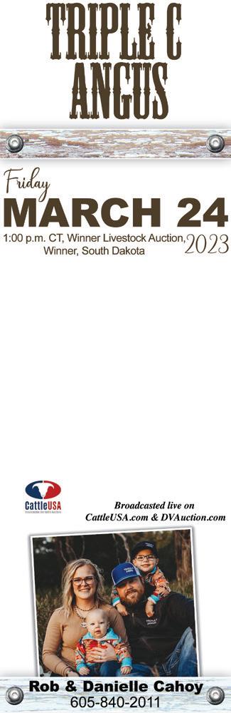 Triple C Angus Annual Production Sale :7 CED BW WW YW HP Milk CW Marb RE $M $W $F $B $C -1 +4.4 +66 +110 +11.4 +22 +50 +0.50 +0.66 +75 +54 +88 +133 +248 20%