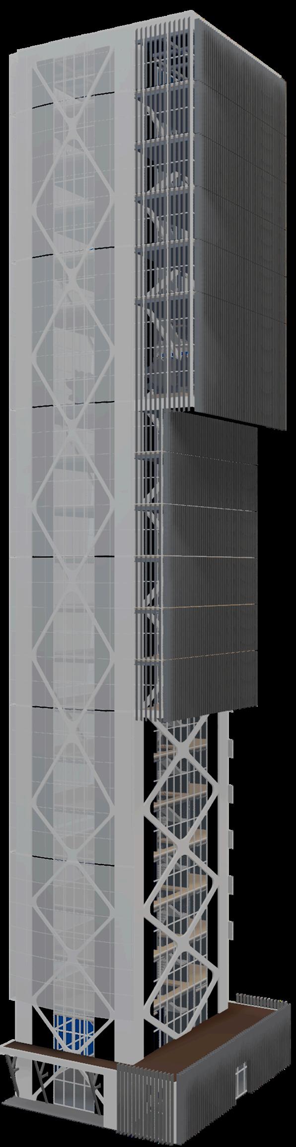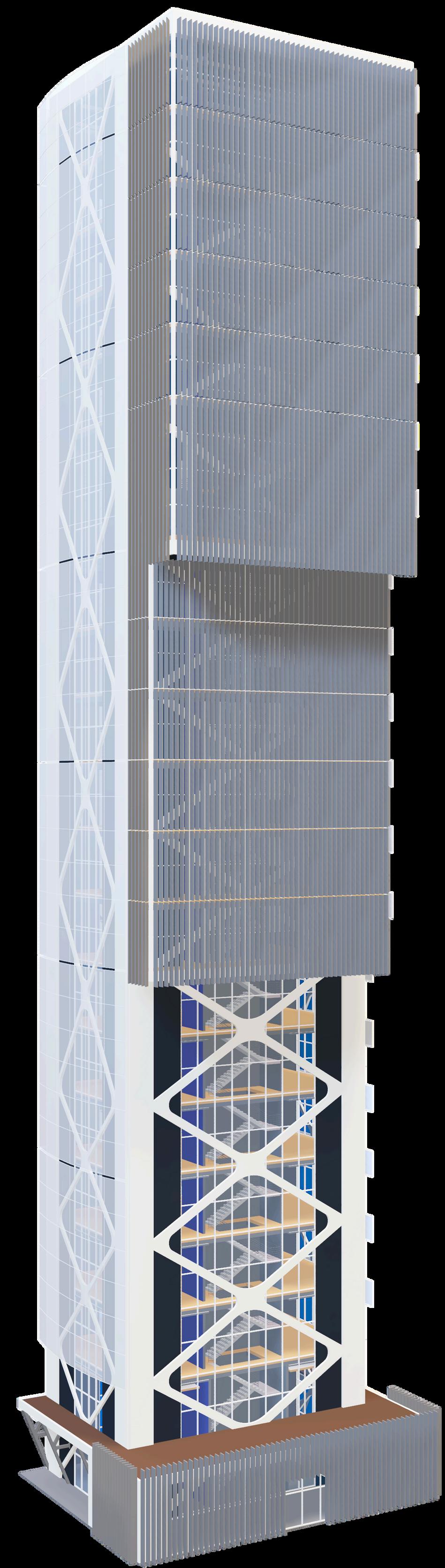 Students design a 19-story tall tower with unique elevation and plan constraints Building form design criteria required two broad cantilever steps at increasing elevations Building design also needed to conceal a structural system capable of resisting high seismic loads while still maximizing rentable floor area.