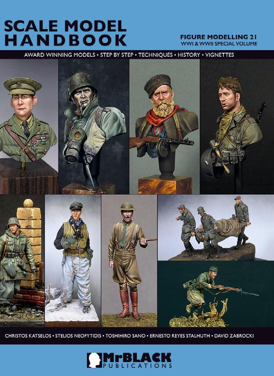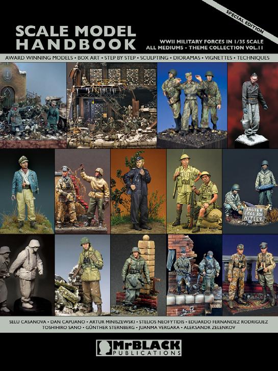 Scale Model Handbook is series of books covering most of the modelling aspects like figures, armour, aircraft, dioramas, vignettes, etc. Every book will be dedicated to one modelling field (Armour Modelling, Figure Modelling, Aircraft Modelling etc.) and will include a unique collection of work that is aimed at all levels of modellers. Award winning models, Step by Step themes, Techniques, History, Original illustrations, Color tone recipes, Sculpting Tips, Scratch Built Themes, Brushwork Tricks, Groundwork Techniques and much more, all submitted by well know artists, compile this mosaic of inspiration that we hope will keep you occupied for many hours.