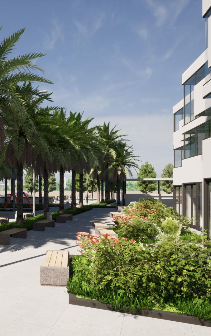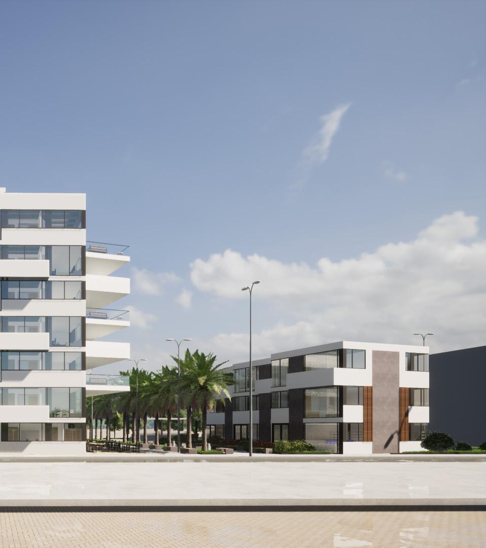 El composición consta de 4 edificios para vivienda, donde se destina la primera planta a comercio, a lo cual se determina un uso mixto. En temas de altura los edificios varían entre 3 y 7 pisos, ademas de contar con cubiertas transitables , en su ultimo nivel.
