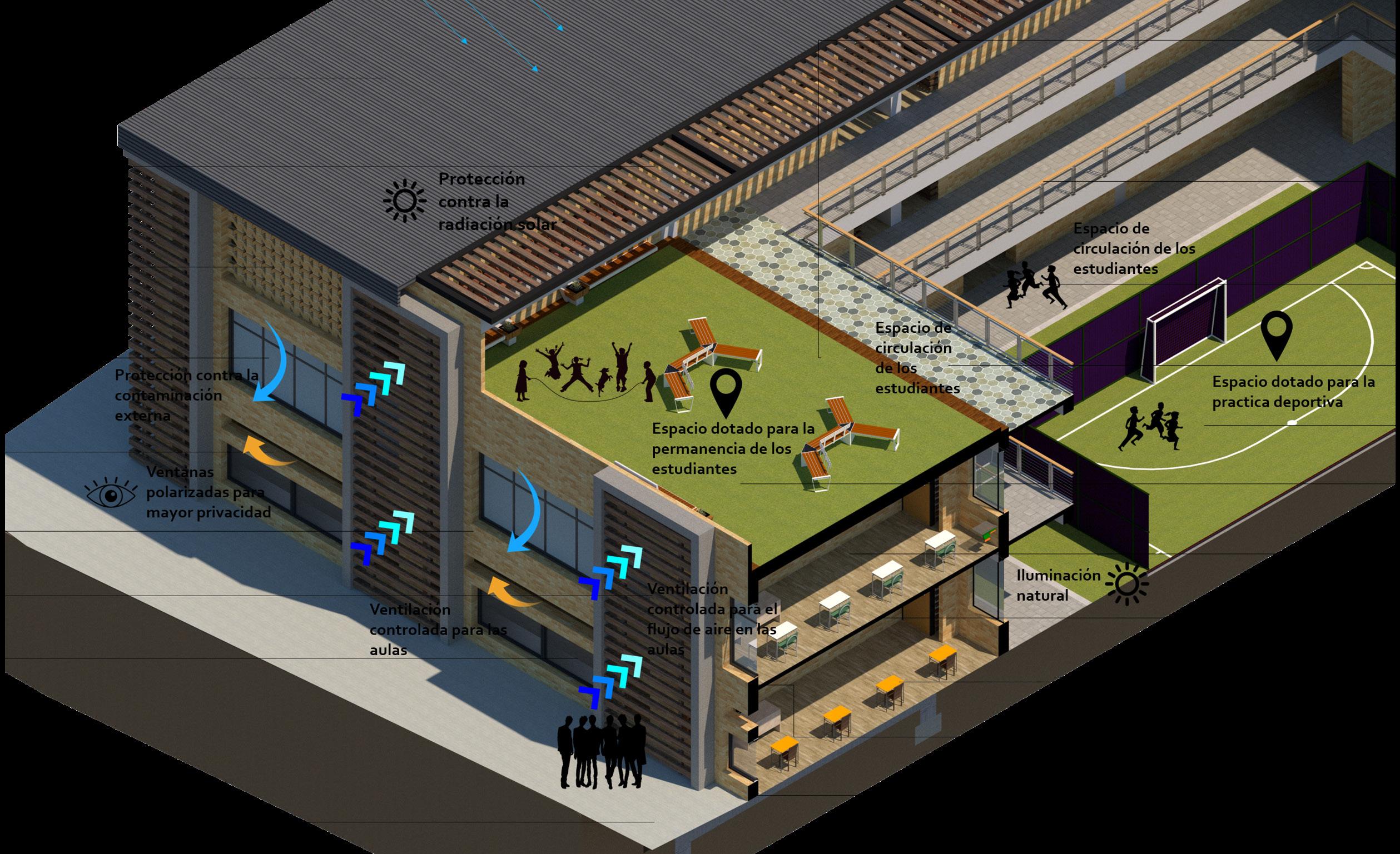 Para el manejo del concepto, se determina el desarrollo de un colegio ubicado en el barrio Palermo, localidad de Teusaquillo,el cual consta de diferentes espacios con los cuales se busca mejorar la forma del aprendizaje e interacción de los estudiantes, mediante diferentes equipamientos y espacios.