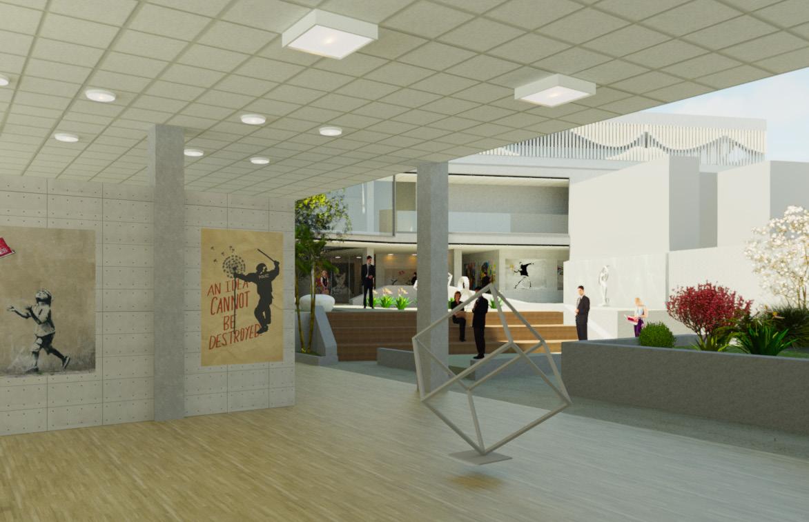 En el espacio urbano se genera una relación visual entre los dos costados del canal del rio arzobispo, usando este como un eje, en el cual, el talud del lado sur funcionara como un lienzo para que los estudiantes de la escuela de arte puedan realizar periódicamente pinturas y así exponerlas a los usuarios y visitantes de estos espacios, por otra parte se creara un recorrido que contendrá obras a exponer igualmente de los estudiantes.