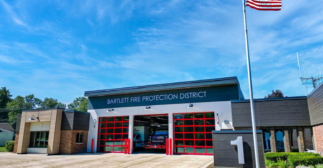The Bartlett Fire Protection District Station (BFPD) No. 1 project involved the renovation of the existing fire protection facility, encompassing various areas such as bunk rooms, locker rooms, kitchen and dining spaces, day room, board room, public and private restrooms, and administrative offices. The exterior transformation was a key aspect, with the removal of dated mansard roof lines to modernize and enhance the appearance of this public works facility located at a significant cross section in downtown Bartlett (Hickory Avenue and Oak Avenue).