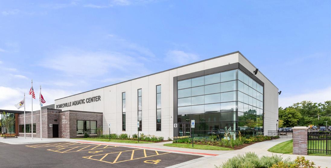 The Romeoville Aquatic Center is a new 22,000 sq ft facility with a 2,600 sq ft splash pad, which offers the community yearround aquatic programming. From the thrilling water slide to relaxing lazy river, the sophisticated, underwater themed facility offers a diverse range of attractions that cater to all ages and swimming abilities, making it a true oasis of aquatic excellence.
